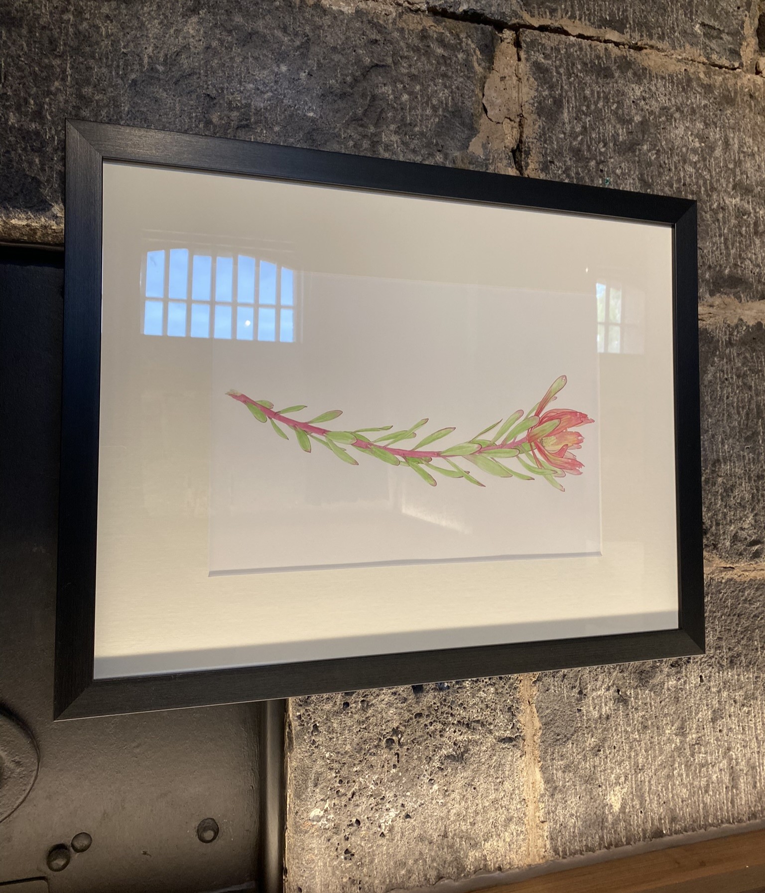 Leucadendron IV, watercolour on paper, 21 x 29.7cm, frame 45.7 x 61cm.